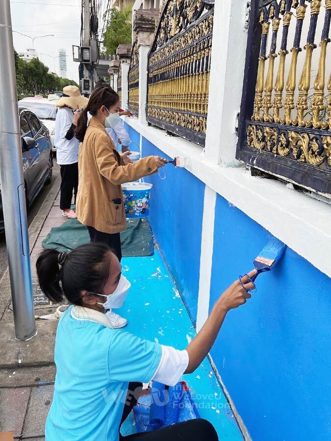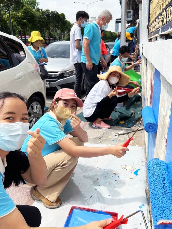재단법인 국제위러브유(회장 장길자) 태국 방콕 회원들이 5월 8일 교육환경개선사업 일환으로 반방까삐 중고등학교 담장 페인트칠에 나섰습니다. 코로나로 막혔던 대면 수업이 5월 새 학기를 맞