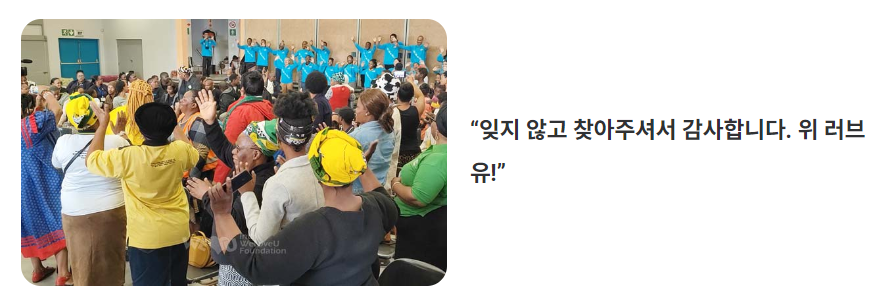 국제위러브유 장길자 회장님 /긴급구호로 아무도 외롭지 않은 세상 만들기(남아공 더반 수재민 500가정 구호품 지원)