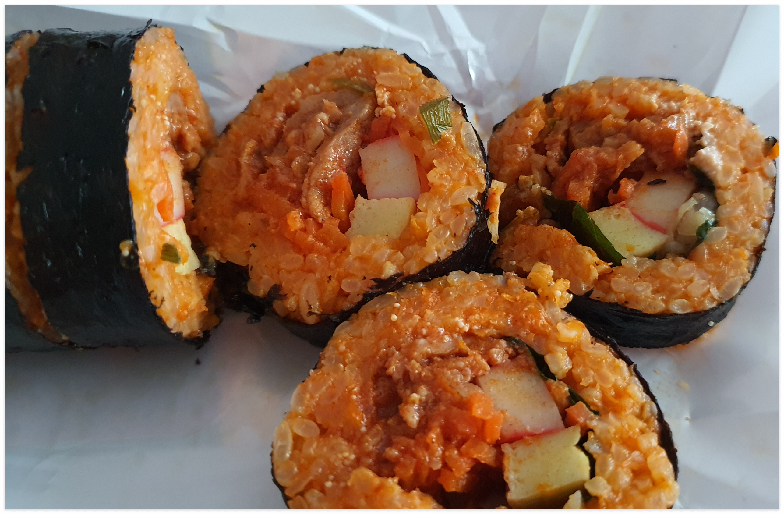 명란제육김밥은 많이 매콤했습니다.